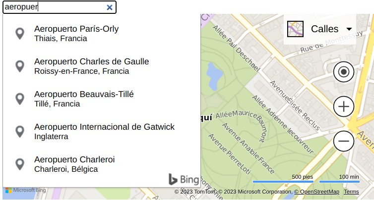 Además de la API básica de mapas, se pueden activar varios módulos como Directions para navegación, Search para buscar el sitio más cercano a unas coordenadas, Spatial Math para cálculos espaciales como distancias, intersecciones, etc. En este apartado vamos a ver como funciona el módulo AutoSuggest que convierte un input en un campo de búsqueda de direcciones y te ofrece sugerencias, devolviendo información sobre el sitio elegido.