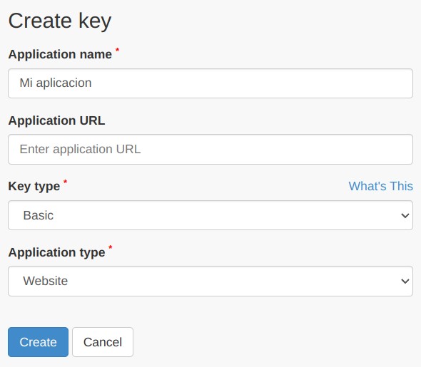 Una vez hecho esto, vamos a la sección My account → My keys y creamos un nuevo proyecto para web: