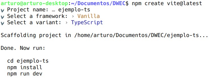 Vite nos permite gestionar código TypeScript de forma transparente, realizando una compilación al vuelo con gran velocidad gracias al uso de esbuild por debajo, sin necesidad de instalar nada extra, y con opciones de configuración por defecto ya creadas para el compilador de TypeScript.